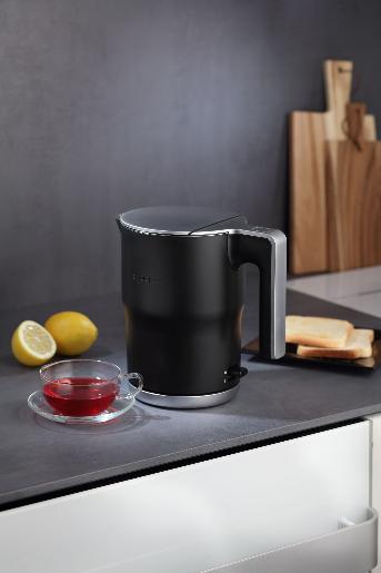 Do przygotowania wybornej filiżanki herbaty wystarczy tylko 1 ręka. Pokrywa otwiera się po delikatnym przyciśnięciu stylowego przycisku.