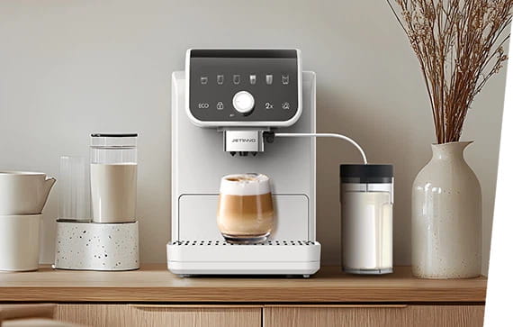 Jetinno JL06 to kompaktowy ekspres do kawy klasy premium, stworzony z myślą o domu, home office i małych biurach. Wyposażony w młynek żarnowy, aplikację mobilną oraz funkcję szybkiego cold brew, oferuje kawę o jakości baristy w każdej filiżance.