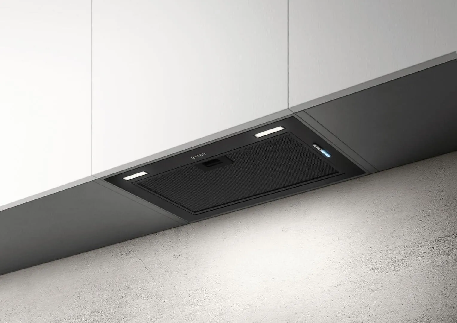 Ten minimalistyczny okap idealnie schowa się pod szafką, pozostawiając wciąż łatwy dostęp do przycisków. Zaprojektowany z wykorzystaniem całkowicie płaskiej krawędzi w sposób niezrównany zintegruje się z meblami.