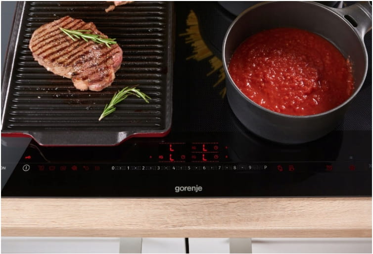 Płyta indukcyjna z dwiema strefami łączenia upraszcza gotowanie w dużych naczyniach. Dwie oddzielne strefy gotowania są połączone, aby utworzyć jedną za pomocą prostego dotyku. Idealny do przygotowywania większych ilości jedzenia jednocześnie.