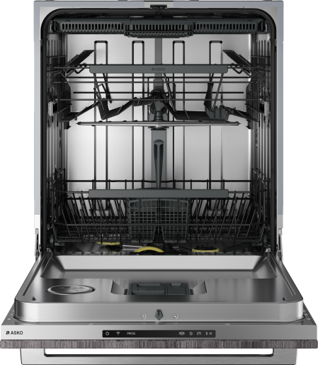 Trzypoziomowy system koszy ASKO pozwala na optymalizację obciążenia. Zdejmuj, reguluj, składaj i przesuwaj stojaki, rzędy grzebieni i kosz na sztućce, zgodnie z bieżącymi potrzebami.